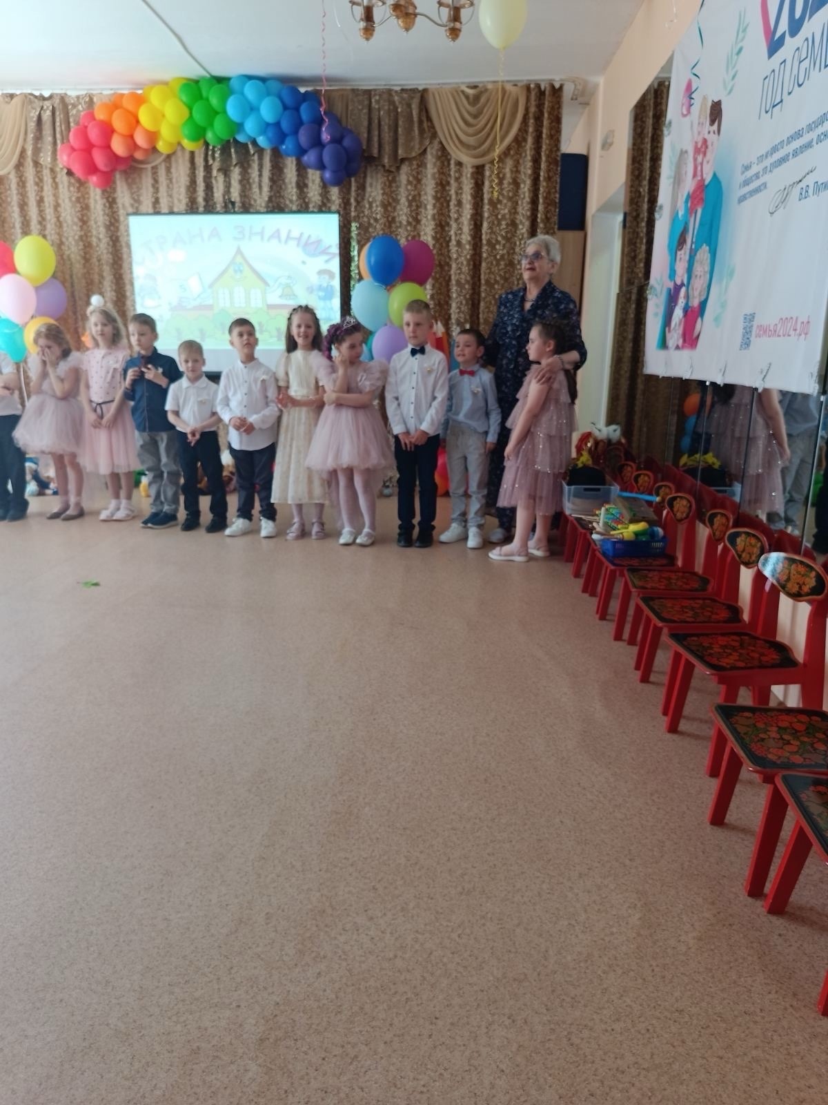 Руководитель детского сада Валентина Михайловна Чанаева пожелала детям успехов в школе, найти новых друзей, быть послушными учениками, а родителям набраться терпения в оказании помощи своим первоклашкам.